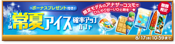 「ジョブ別 常夏アイス確率アップガチャ」を販売中です。