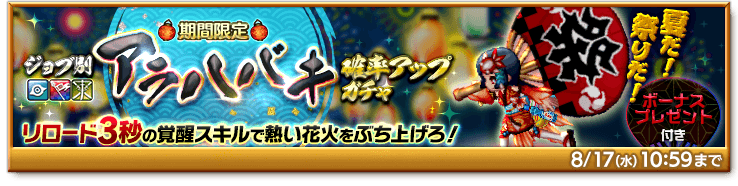 <覚醒スキルリロード3秒!超火力の大花火!「ジョブ別 アラハバキ確率アップガチャ」販売中!>
