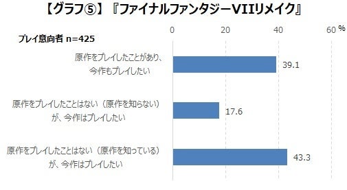 この作品は先程紹介した4つのタイトルとは異なり、「原作をプレイしたことがあり、今作もプレイしたい」と答えたゲーマーが4割近くに達し、「原作をプレイしたことはない(原作を知っている)が、今作はプレイしたい」と答えたゲーマーの43.3%に迫る勢いです。