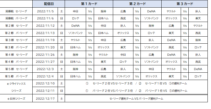 今年のeペナントレースは、セ・リーグが11月5日(土)、パ・リーグが11月6日(日)に開幕します。