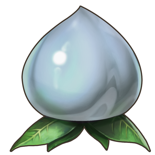 白銀モモ : 寿命を伸ばす美しい白銀の桃。一生に一度しか食べられない。