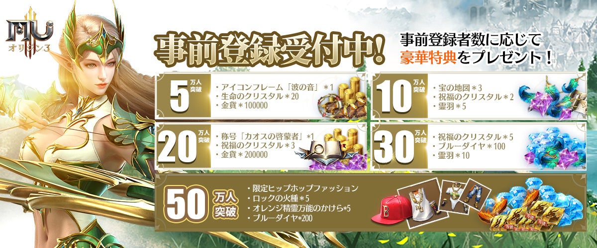ファンタジーMMORPG『MU』シリーズ最新作『MU:オリジンⅢ(MU3)』の事前登録者数が、50万人を突破しました。たくさんのご登録、誠にありがとうございます!