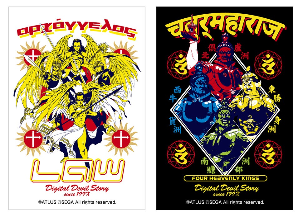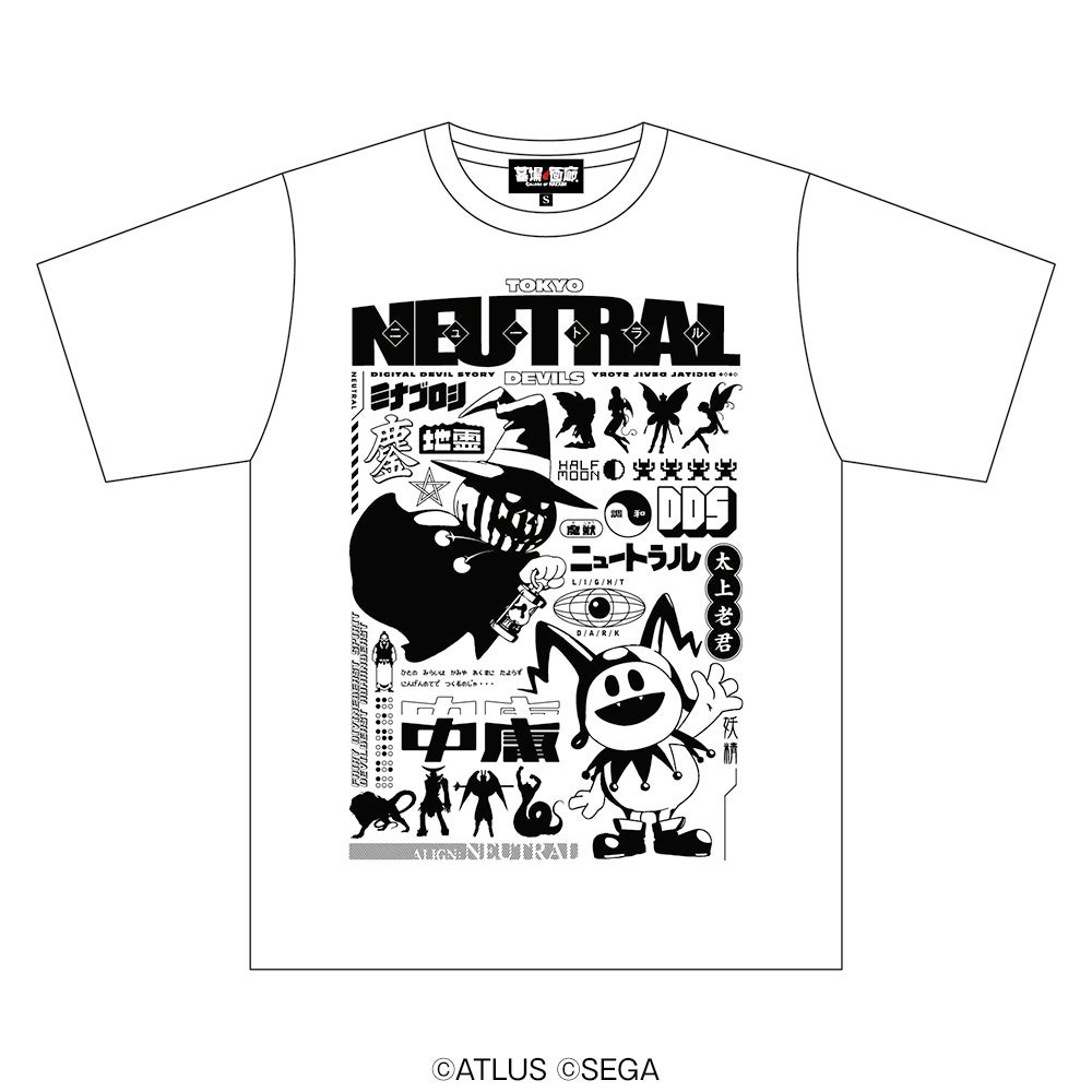 第1弾で製作された「ロウ」&「カオス」Tシャツ2種に続き、第2弾は「ニュートラル」&「魔人」をモチーフとしたTシャツ2種を販売!「ニュートラルTシャツ」には、真・女神転生シリーズのアイコン的キャラを中心に、同属性の悪魔やキーワードを散りばめたデジタルなデザイン。
