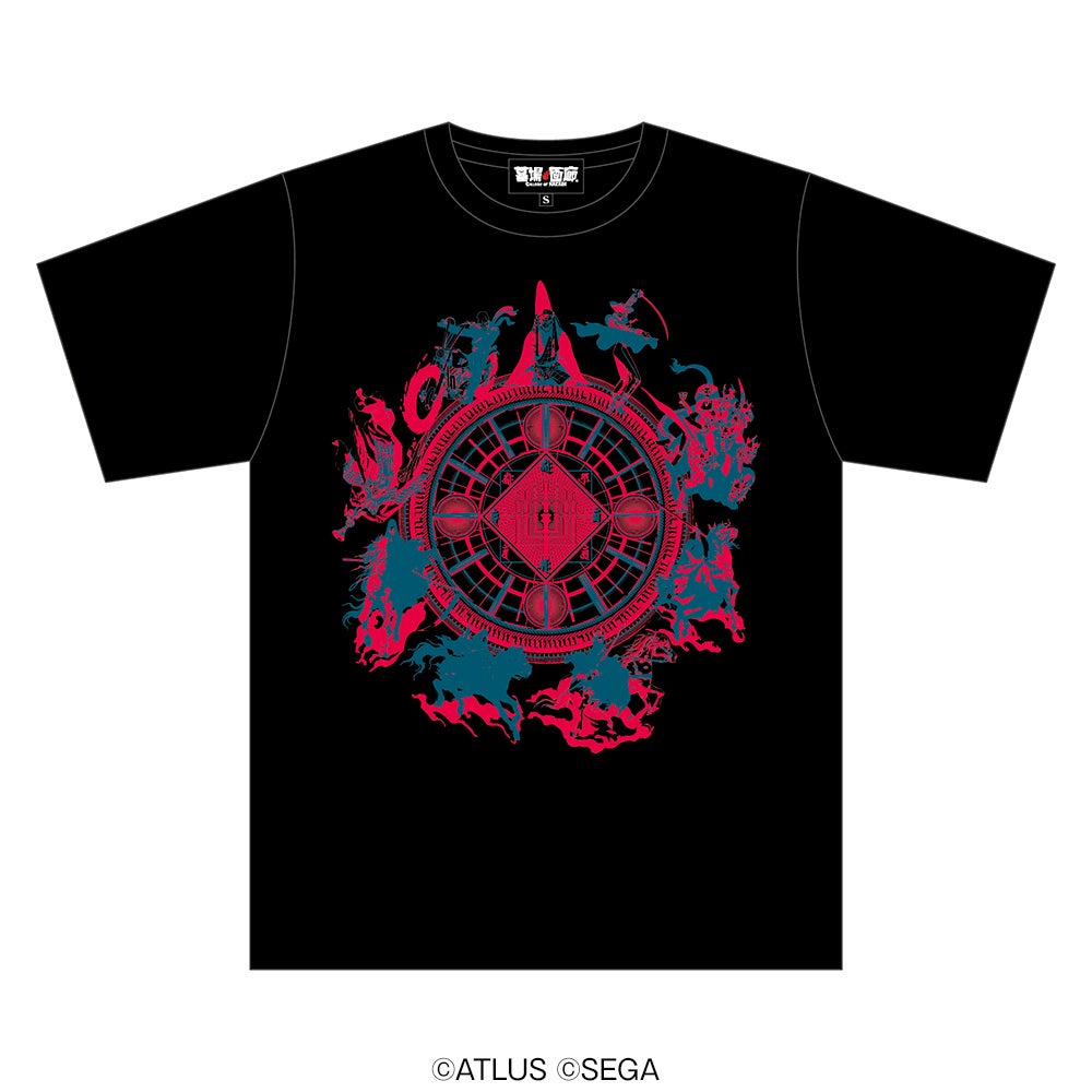 「魔人Tシャツ」はだいそうじょう、ヘルズエンジェル、マタドールなど魔人キャラクターのシルエットを、曼荼羅風に配置したまさに真・女神転生への信仰心溢れるデザイン!
