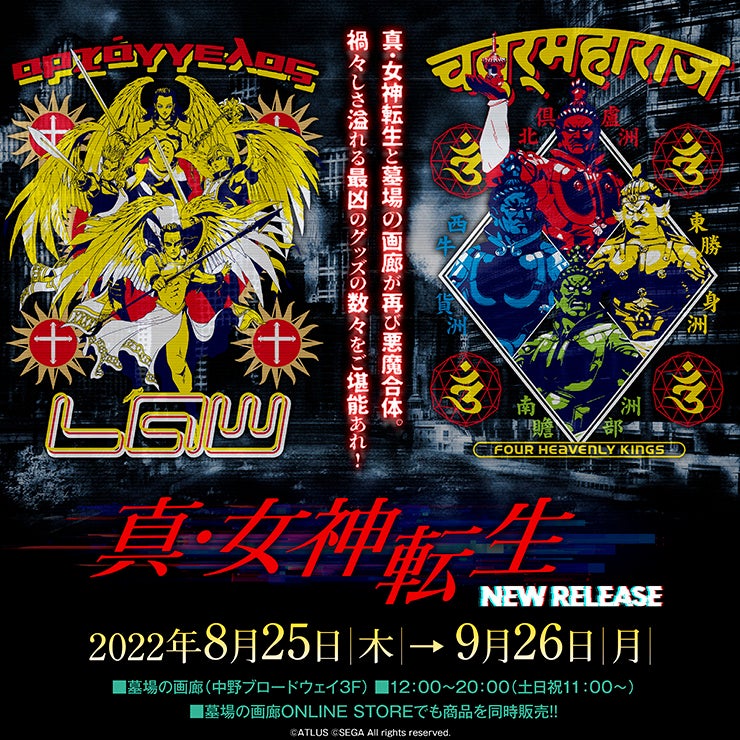 マンガ、アニメ、特撮などを始めとするサブカルチャーをテーマとした企画展を開催・運営している株式会社クレイジーバンプは、8月25日(木)から新たに販売する、【真・女神転生】関連グッズを発表いたします。(https://hakabanogarou.jp/archives/30574)
