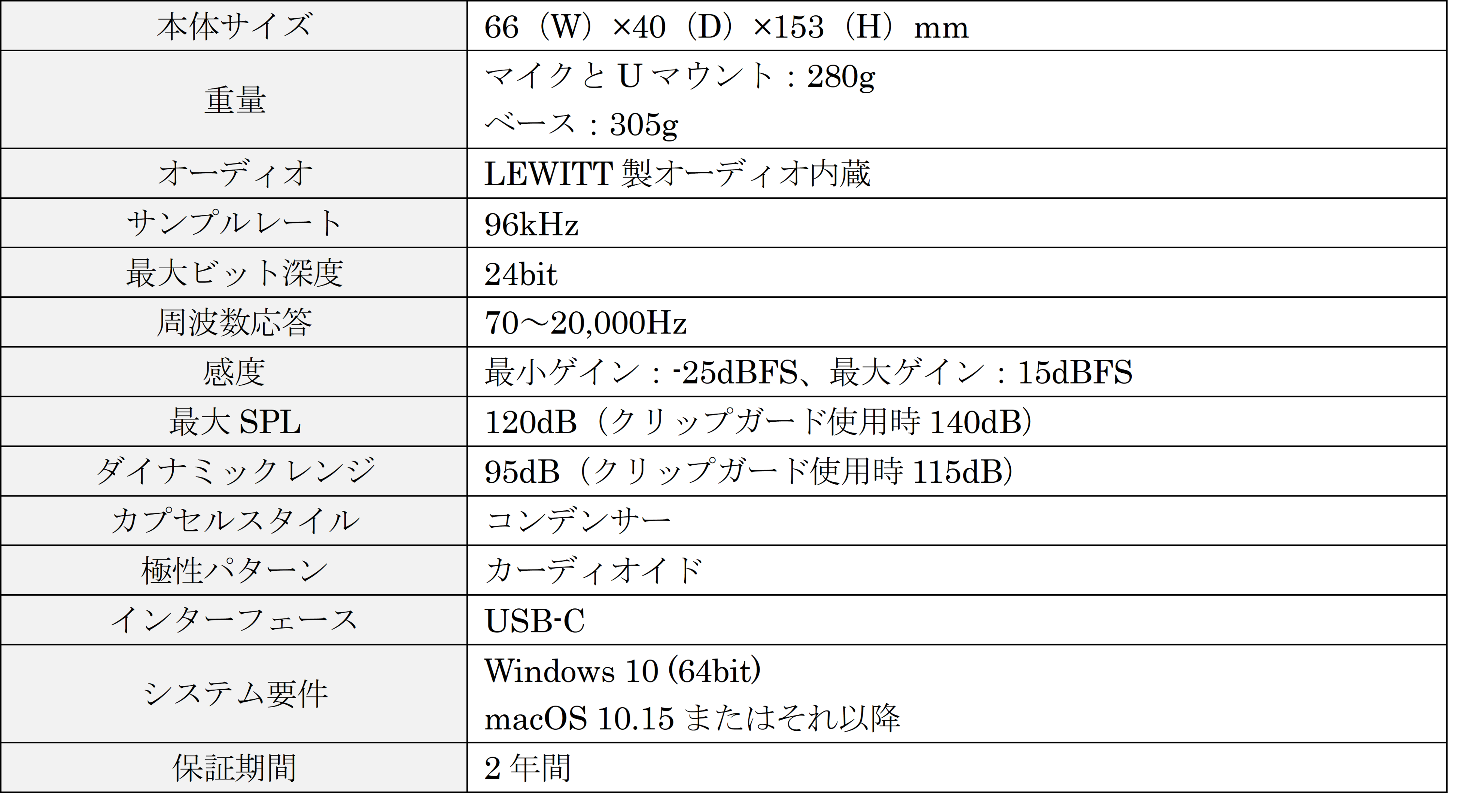 ・カスタムアクセサリー:ショックマウント、外部ポップガード(別売り)