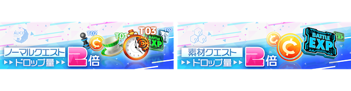 リリース記念育成ボーナスとして、ノーマルクエストや素材クエストで獲得できる経験値や素材のドロップ量が2倍!