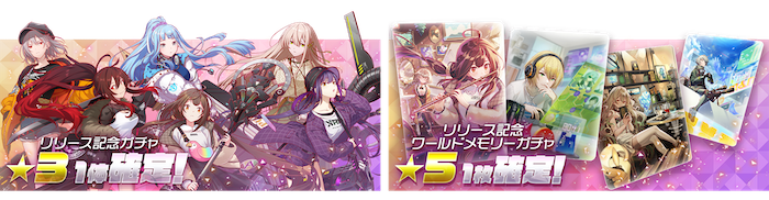 リリースを記念して、★3キャラ確定ガチャ、★5ワールドメモリー確定ガチャを開催!(※購入クォーツのみ)