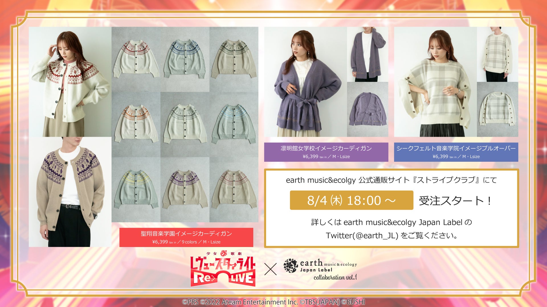 『スタリラ』の舞台少女たちをイメージしてデザインされたコラボファッションアイテムを、ファッションブランド「earth music&ecology Japan」(earthJL)公式通販サイトにて受注販売します。