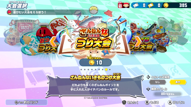 ▲「釣スピパーティー」の「大会モード」でプレイ可能!釣ったざんねんな魚の合計ポイントで勝負!