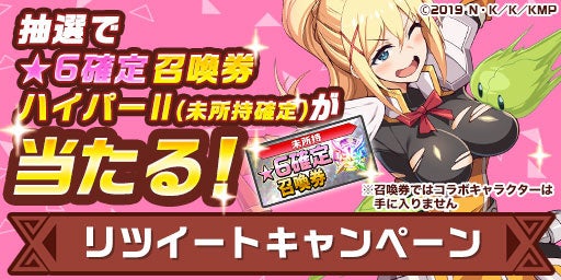 ログインするだけでコラボキャラクターが貰えるログインボーナスや、抽選で5名様に「★6確定召喚券ハイパーⅡ(未所持確定)」が当たるリツイートキャンペーン、さらに今から始める人でもすぐに追いつく無料100連召喚や100クリスタル100連召喚など、盛りだくさんな内容となっております。