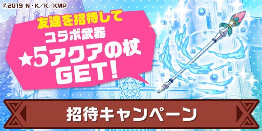 期間中、友達招待をすると、報酬で★5武器「アクアの杖」が手に入ります。