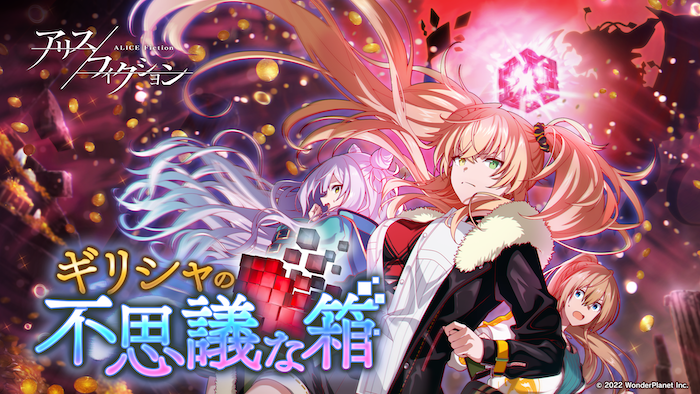 エンターテインメントサービス事業を行うワンダープラネット株式会社(本社:愛知県名古屋市、代表取締役社長CEO:常川友樹、東証グロース:証券コード4199、以下当社)は、2022年7月27日(水)に全世界でリリースした新作スマートフォン向けゲーム『アリスフィクション』にて、本日より新イベント「ギリシャの不思議な箱」をスタートしたことをお知らせいたします。