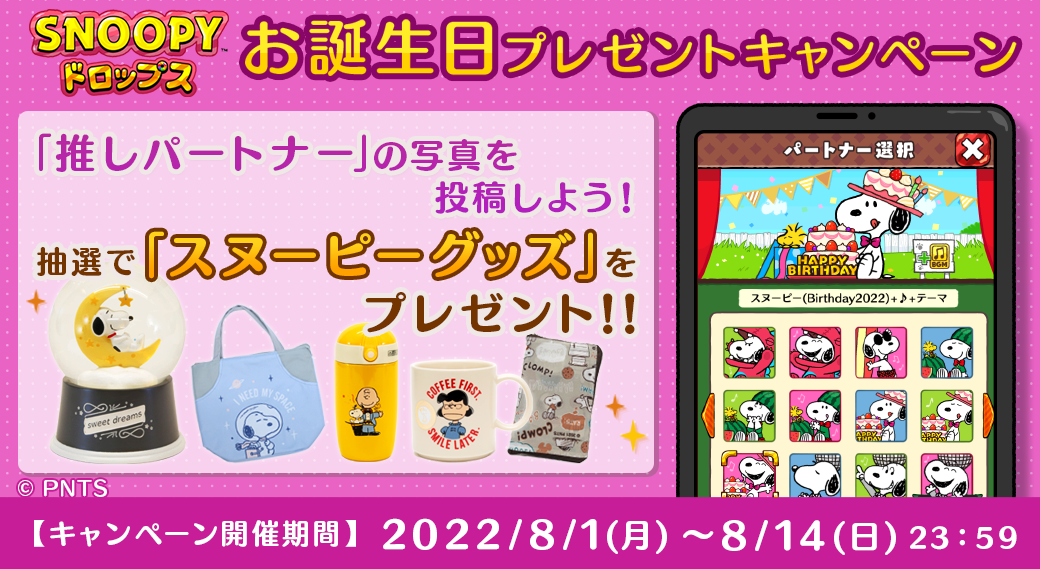 パズルゲームアプリ『スヌーピードロップス』が、8月10日のスヌーピーのお誕生日を記念して、投稿キャンペーンを開催します♪