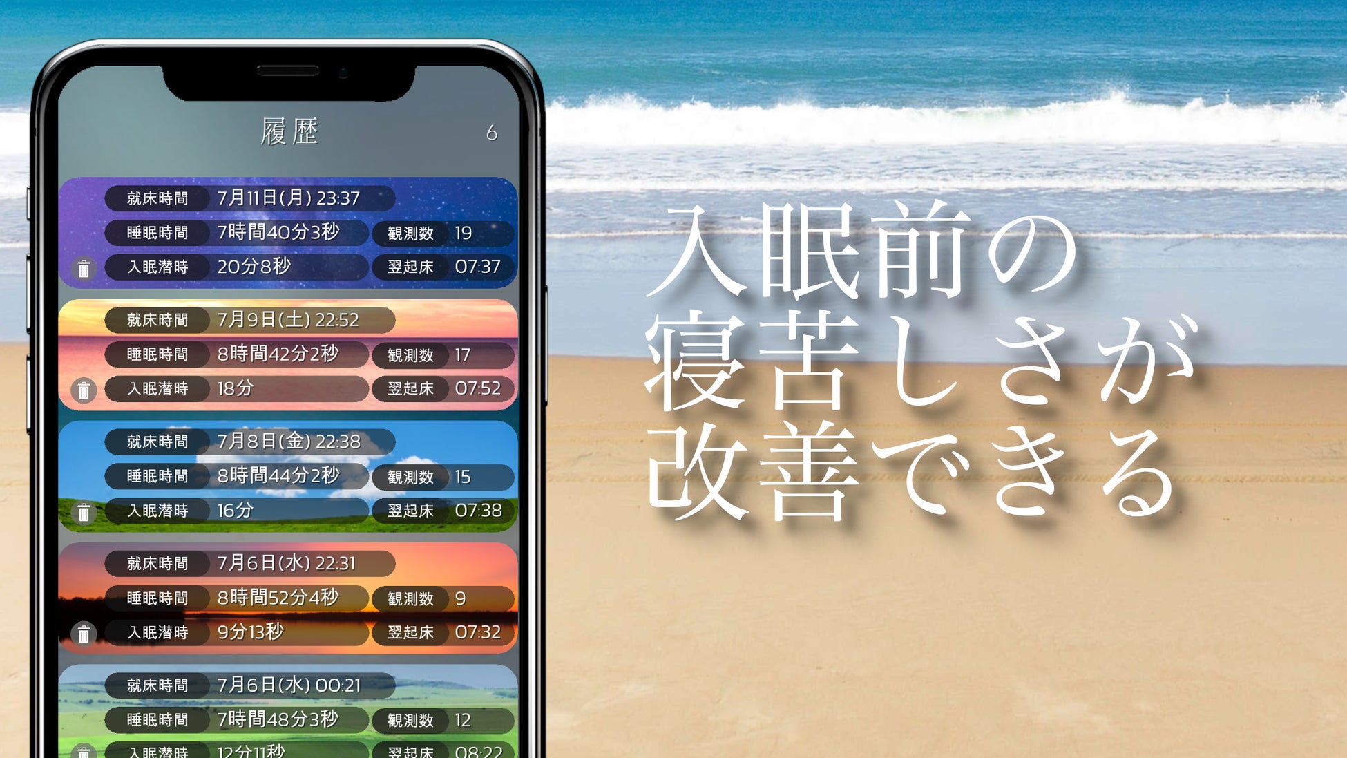 - 入眠前の寝付き改善に特化。スマホをさわってなでるだけ。
