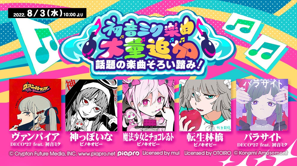 さらに!以下の初音ミクの有名楽曲が5 曲登場!誰でもすぐに遊ぶことができるので是非プレーしてみてください!