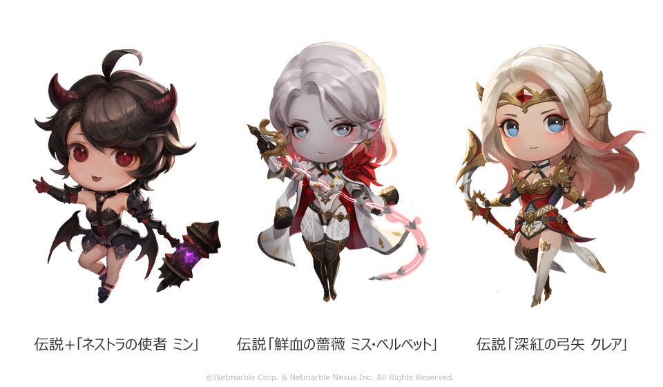伝説+「ネストラの使者 ミン」、伝説「鮮血の薔薇 ミス・ベルベット」、伝説「深紅の弓矢 クレア」が新ペットとして登場いたします。ミンは合成から、ミス・ベルベットとクレアは合成や召喚などを通じて入手することができます。