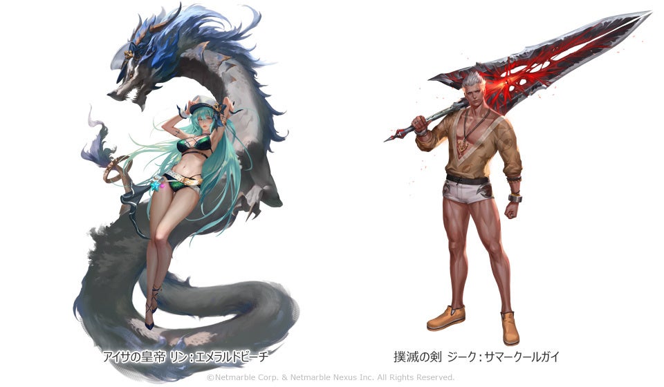 「アイサの皇帝 リン」と「撲滅の剣 ジーク」に夏によく合う新コスチュームを追加しました。