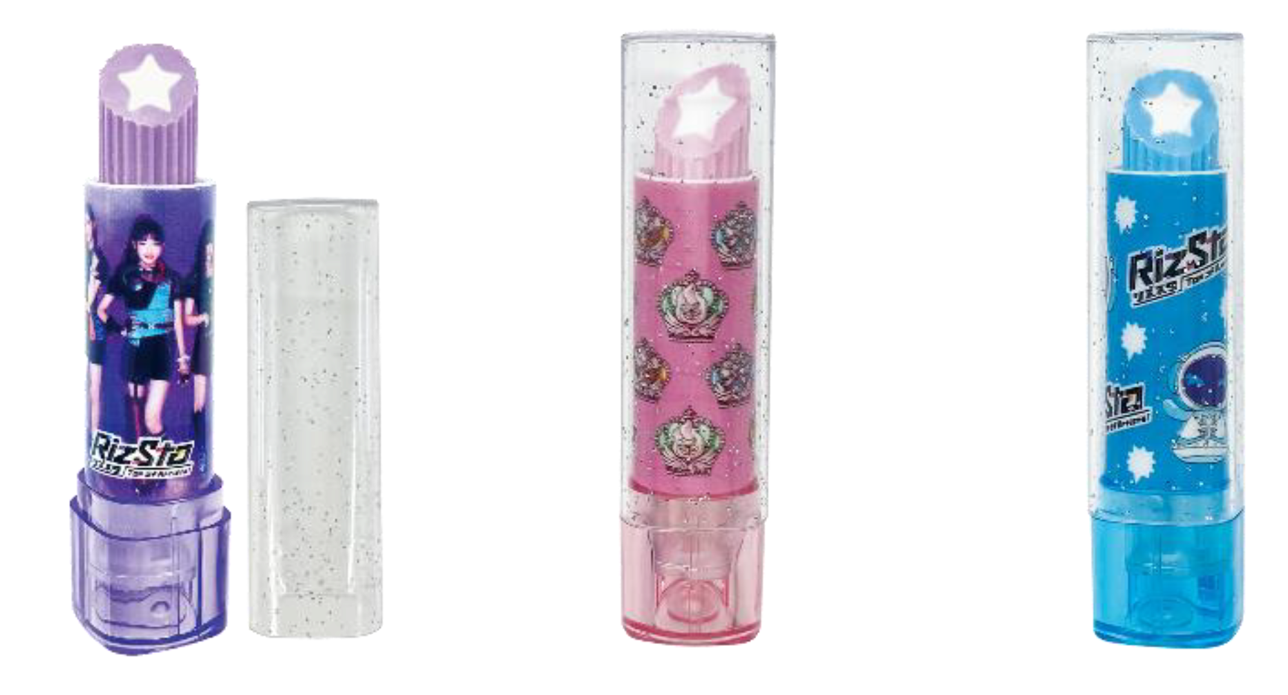 ☆型の模様の消しゴムとラメ感あるキャップデザインがカワイイ、リップスティック型の消しゴム。