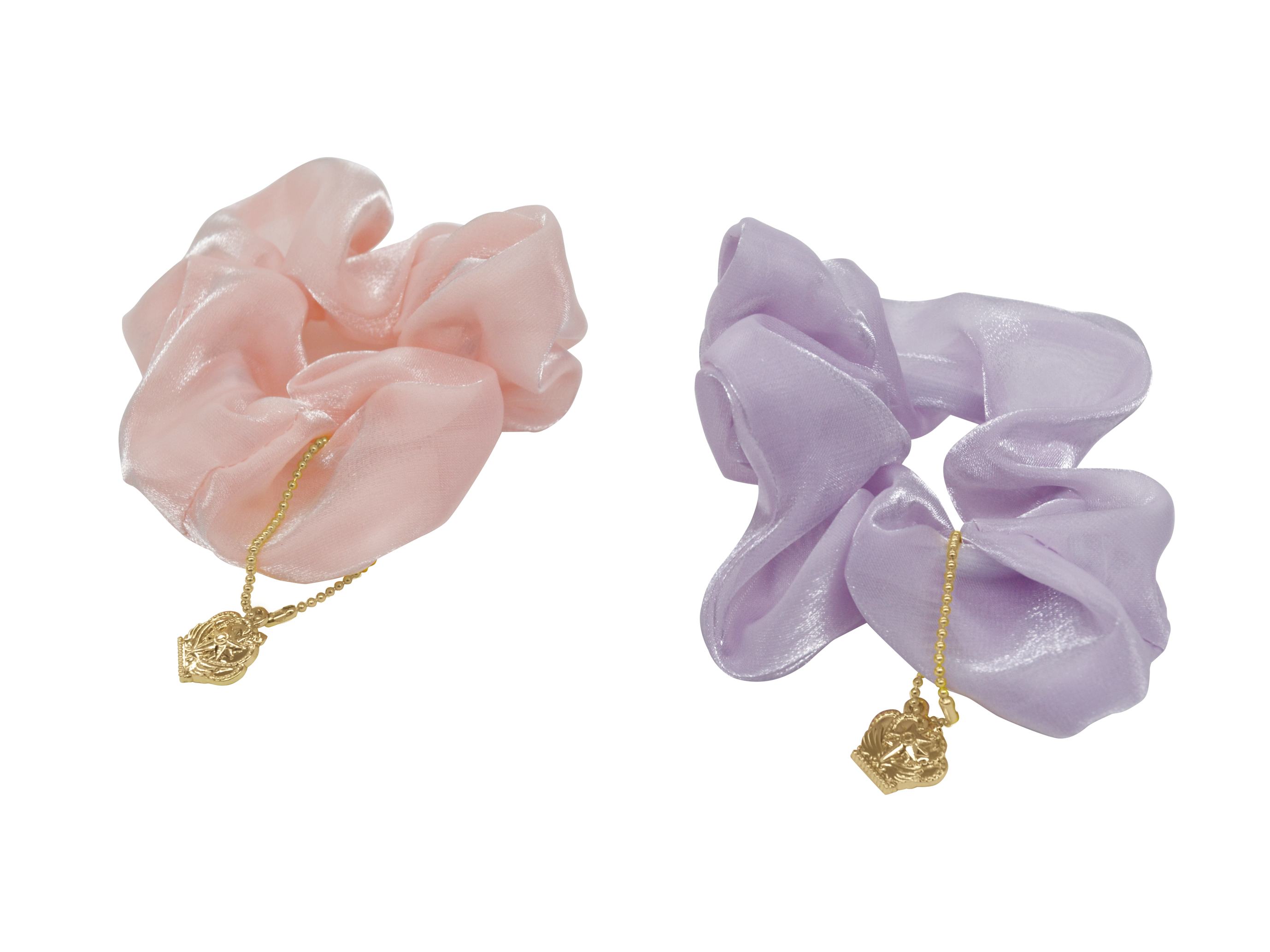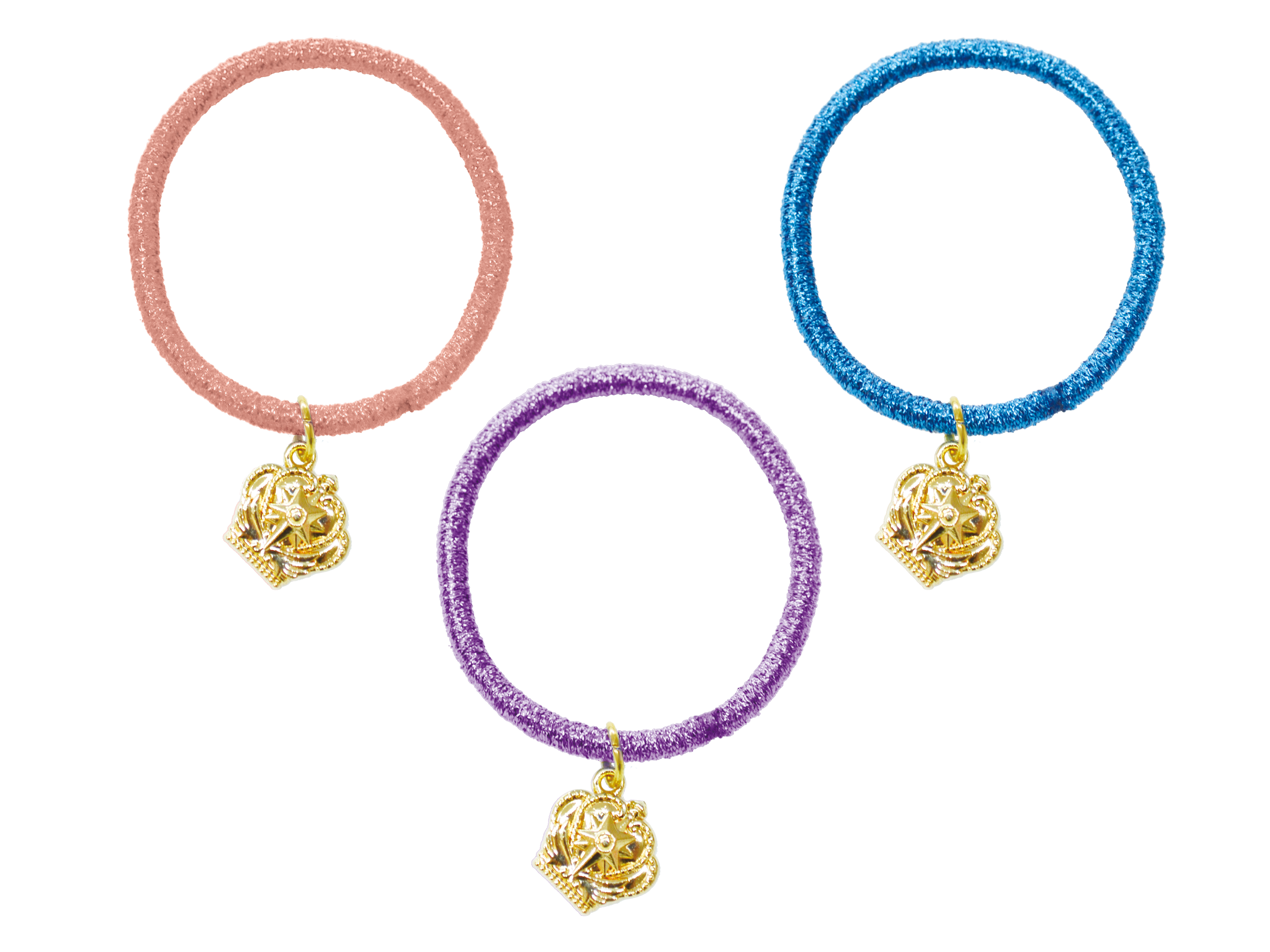 ゴージャスなラメゴムにリズスタエンブレムを型取ったチャームが揺れるヘアゴム。