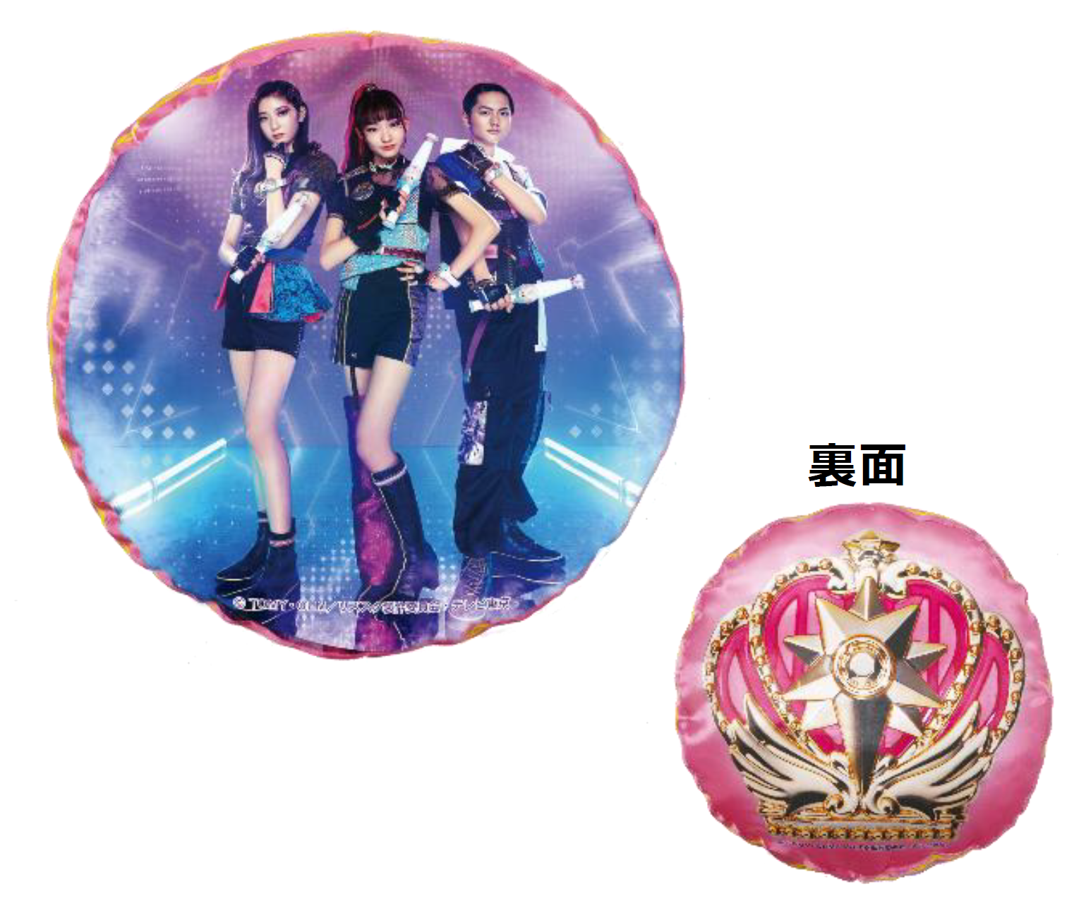 リズスタの煌びやかな世界観をサテン生地で表現したラウンドクッション。