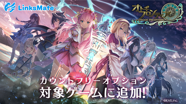 株式会社LogicLinks(以下LogicLinks、本社:東京都渋谷区、代表取締役社長:春田 康一)は、MVNOサービス「LinksMate」において、2022年8月4日(木)よりカウントフリーオプション対象コンテンツとして株式会社KMS(以下KMS、本社:東京都品川区、代表取締役社長:梶原 健太郎)が提供する『オトギフロンティア』を新たに追加することをお知らせいたします。