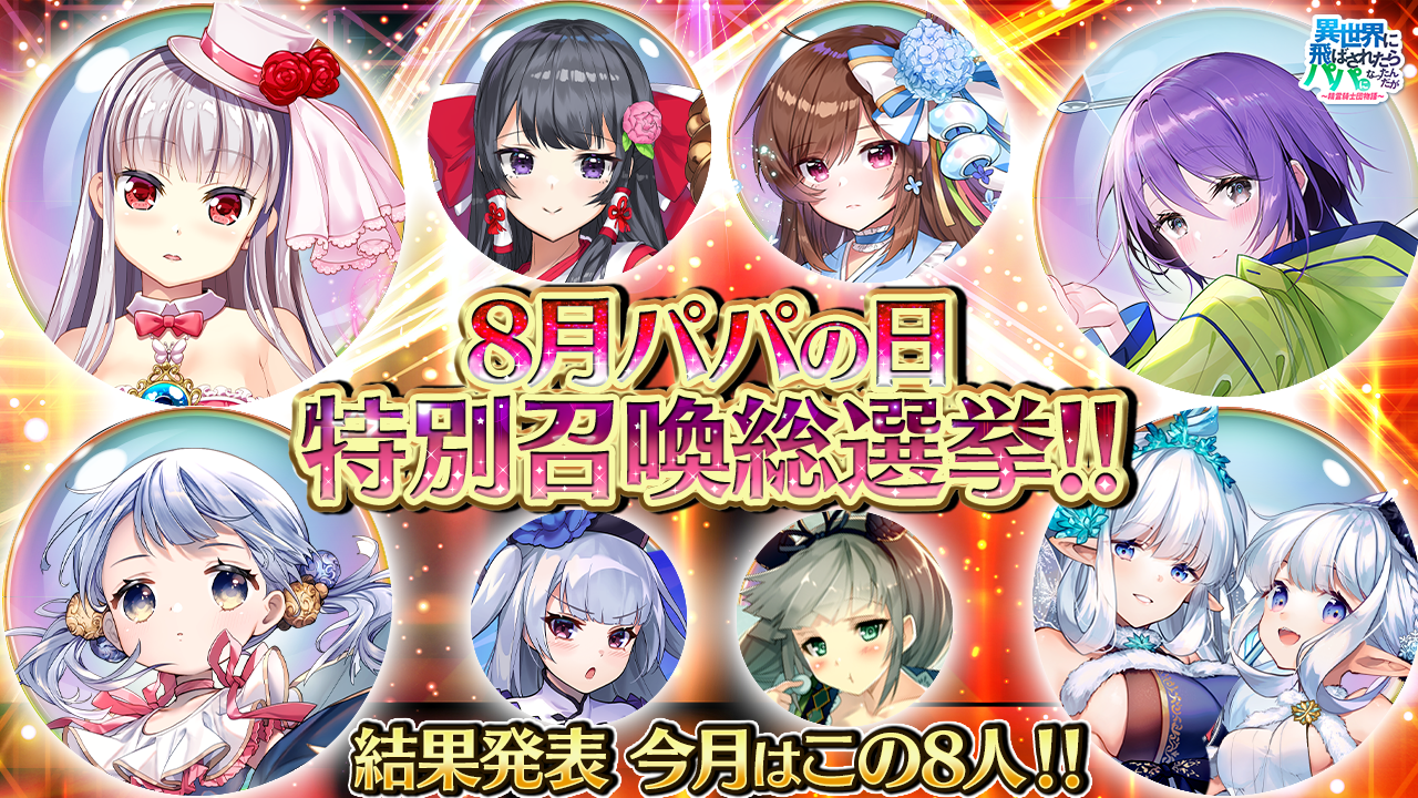 また、 先日ユーザーの皆様にご投票いただいた「特別召喚総選挙」で上位8名になったURキャラを集めた特別UR召喚を行います。