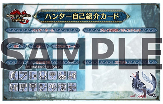 ローソンでNintendo Switch『モンスターハンターライズ:サンブレイク』ダウンロードカードを購入すると、ゲーム内で使用できる【狩人特典】ハンターお役立ちパックSP&ジェスチャーがもれなくもらえます。さらに、ダウンロードカードの台紙に掲載しているQRコードからサイトにアクセスすると、「ルナガロン」バージョンの「ハンター自己紹介カード」の画像データが入手可能。入手した画像データは、自由に狩友とシェアしてください。
