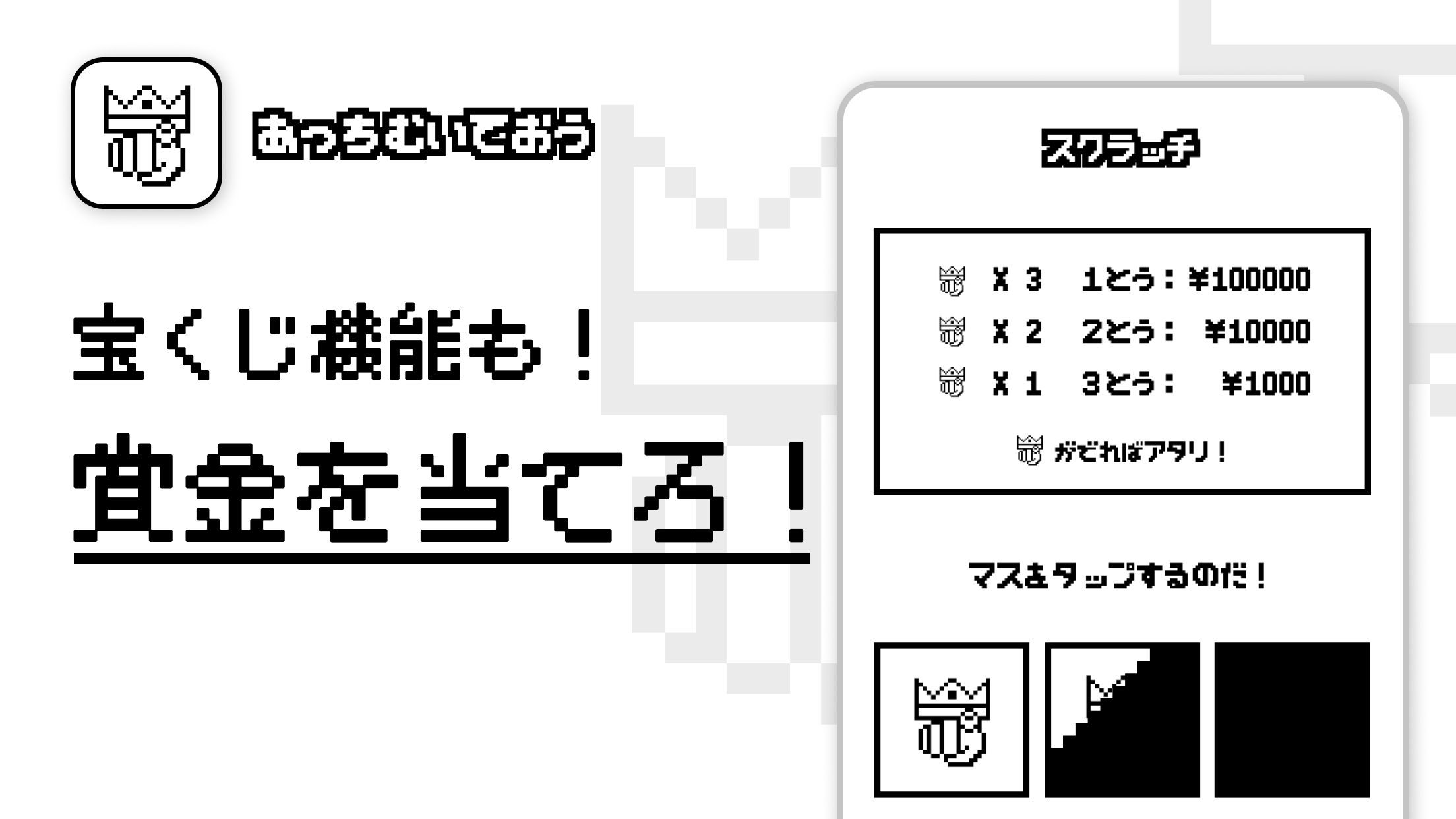 あっちむいてほい以外のスクラッチ機能も使って賞金を手に入れろ!すぐに現金か懸賞品に交換可能!