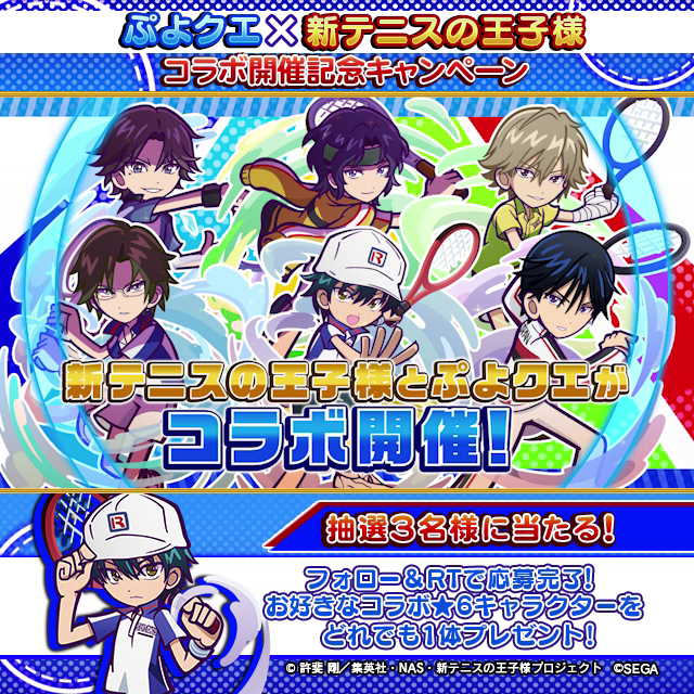 株式会社セガは、大好評配信中のパズルRPG『ぷよぷよ!!クエスト(以下、『ぷよクエ』)』にて、TVアニメ『新テニスの王子様』とのコラボレーションイベントを本日2022年8月9日(火)から8月29日(月)まで開催します。