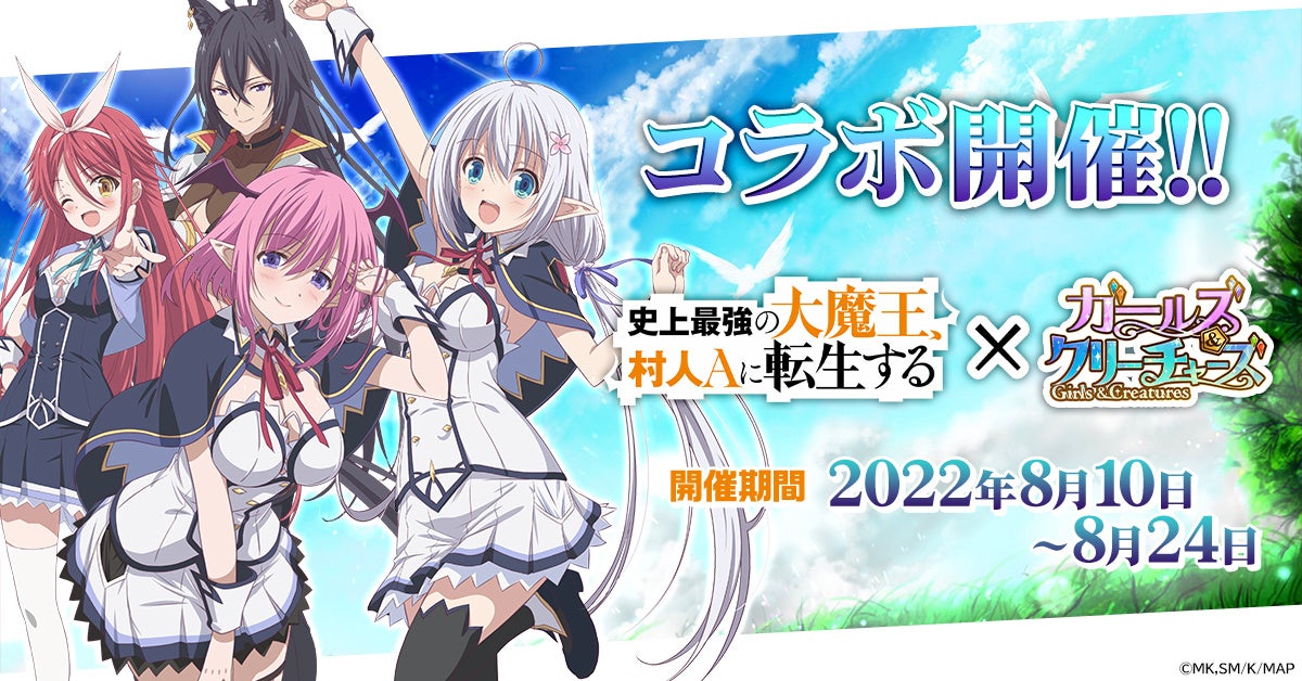 CTW株式会社は、ゲームサービスG123にて配信中のHTML5ゲーム『ガールズ&クリーチャーズ』において、TVアニメ『史上最強の大魔王、村人Aに転生する』とのコラボイベントを開始したことをお知らせいたします。