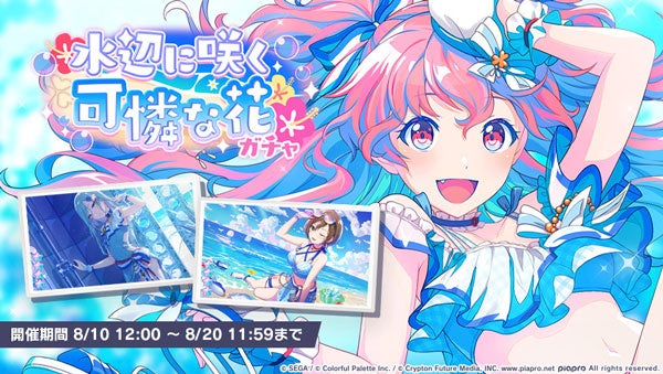 株式会社セガ(本社:東京都品川区、代表取締役社長COO:杉野行雄)と株式会社Colorful Palette(本社:東京都渋谷区、代表取締役社長:近藤裕一郎)は、iOS/Android向けリズム&アドベンチャー『プロジェクトセカイ カラフルステージ! feat. 初音ミク(以下、プロジェクトセカイ)』について、2022年8月10日(水)よりゲーム内イベント「青空の先、輝きを追いかけて」、「水辺に咲く可憐な花ガチャ」を開催中です。