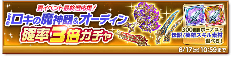 <夏イベント最終週攻略を応援!「ジョブ別 ロキの魔神器&オーディン確率3倍ガチャ」販売!>