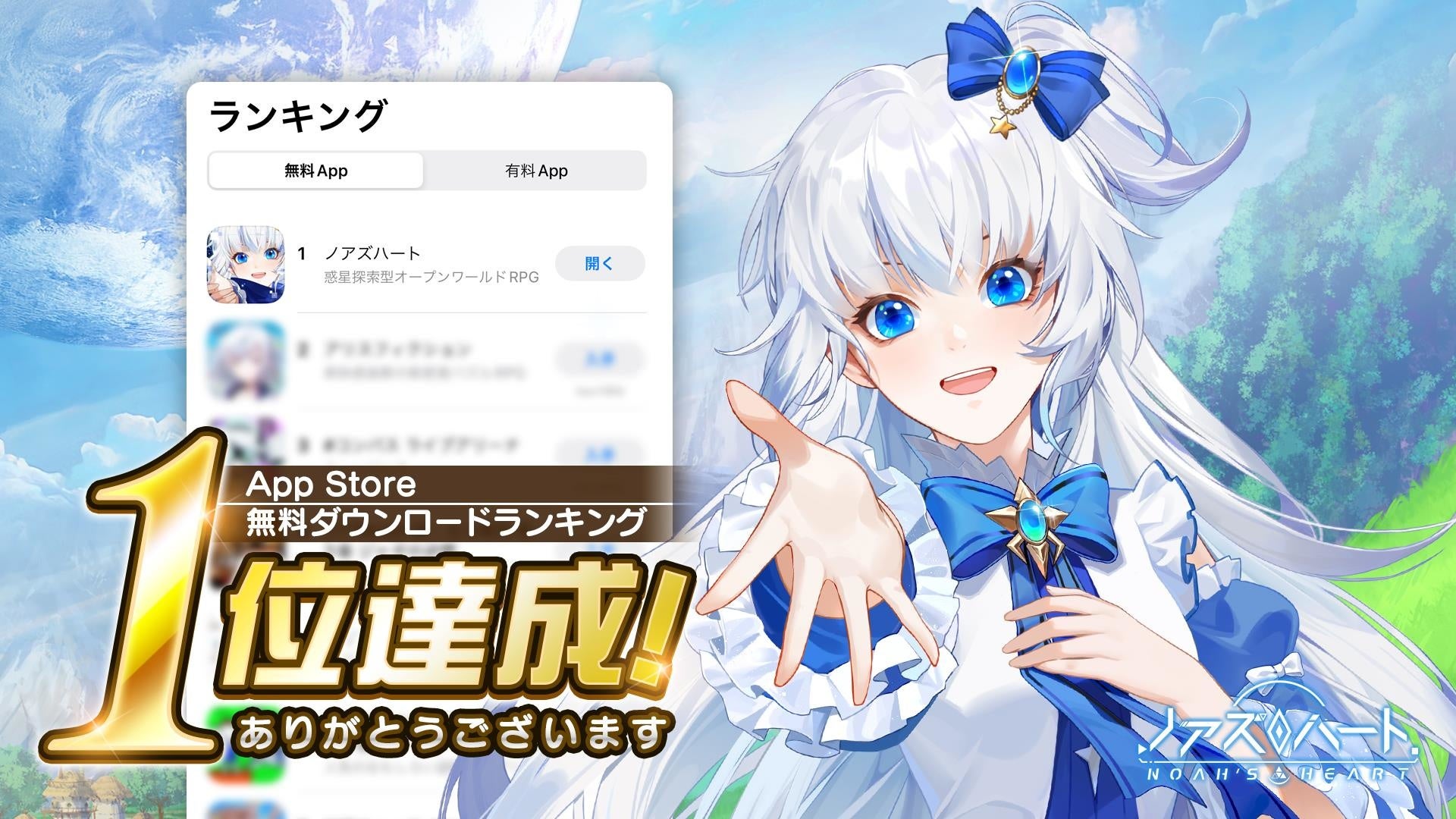 『ノアズハート』はリリース前日の7月27日に、App Store 無料ゲームのダウンロードランキングで1位を獲得しました!