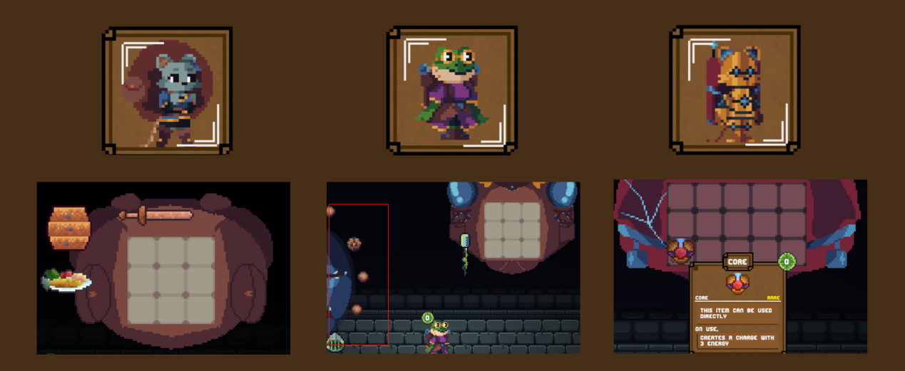 アーリーアクセス版では、それぞれ特徴の異なる3名のキャラクターでプレイすることができます。選択したキャラクターによって冒険の進め方も変わってきます。カエルを主人公にした場合はプレイターン数や戦闘で獲得するアイテム、ロボットを主人公にした場合はいかに効率よく導通のための回路をつなぐかが冒険の成否を大きく左右します。