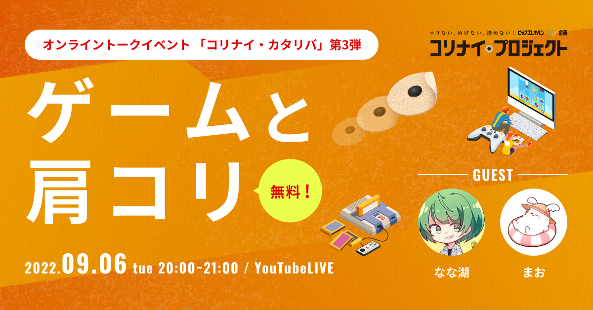 - 「コリナイ・カタリバ」第3弾「ゲーマー・配信者のコリ事情を探る!コリに悩む人気ゲーム配信者とゲームをしながら語らおう」