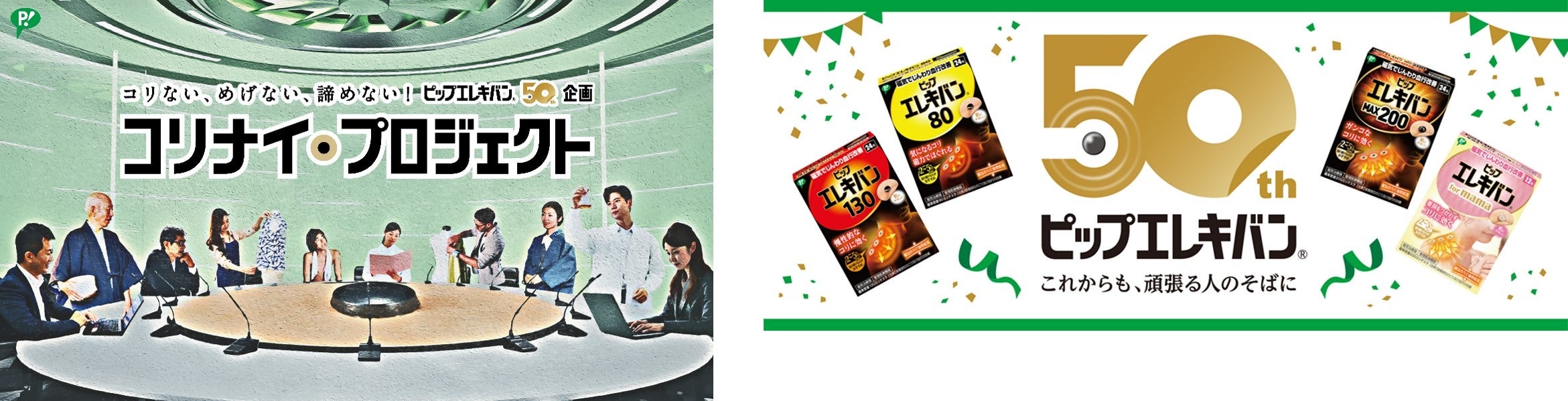 ピップエレキバンは、1972年の誕生から50年。おうちの薬箱から家族の一員のように見守り続け、頑張る人たちを肩コリから解放してきました。