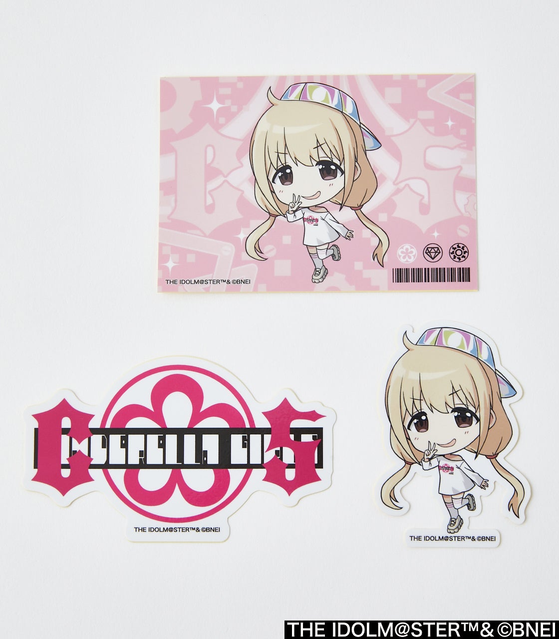 1枚で存在感のある背景付きのステッカー、アイドルがダイカットされたステッカー、ユニットロンTのデザインステッカーとお好きなデザインをご自由に貼って遊べるセット。