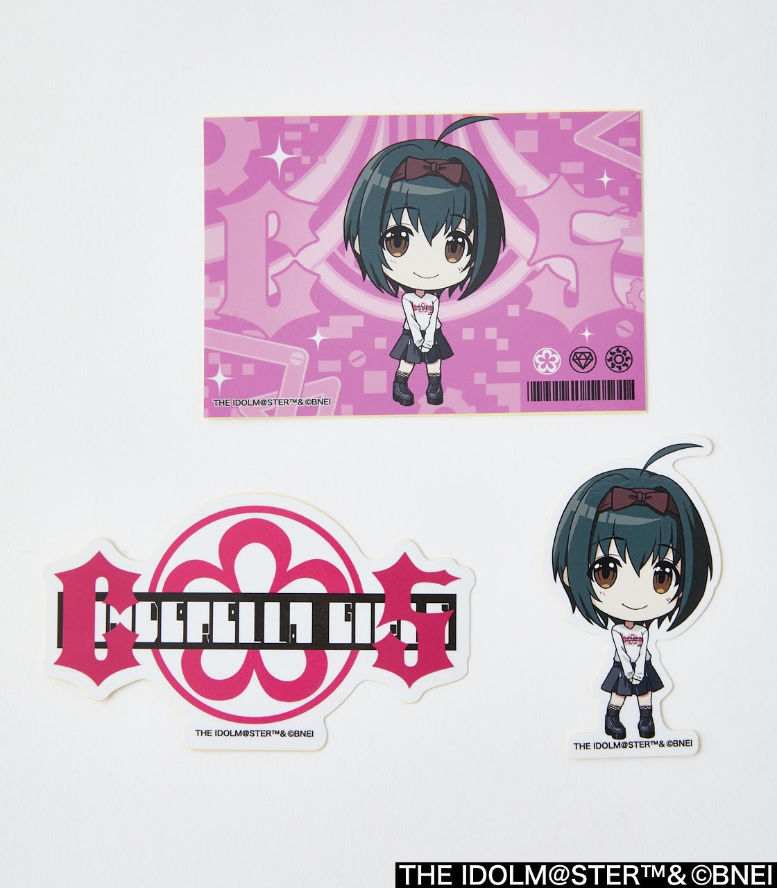 1枚で存在感のある背景付きのステッカー、アイドルがダイカットされたステッカー、ユニットロンTのデザインステッカーとお好きなデザインをご自由に貼って遊べるセット。