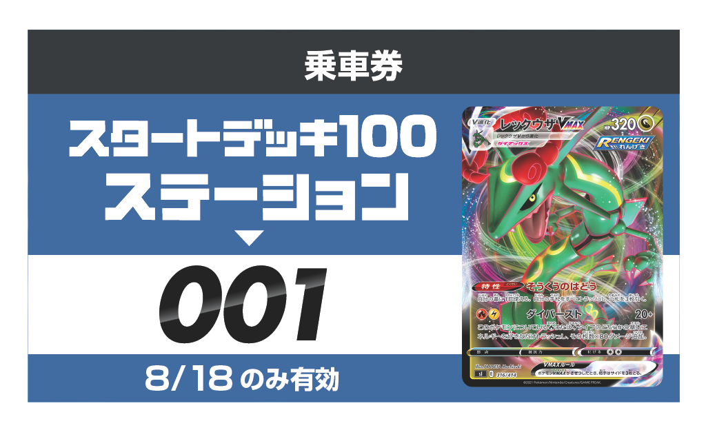 株式会社ポケモン(東京都港区、代表取締役社長:石原恒和)は、8月18日(木)から21日(日)の4日間に渡り、JR両国駅の通常使用されていない“幻のホーム”である3番線臨時ホームで、ポケモンカードゲーム ソード&シールド「スタートデッキ100」の体験イベント「スタートデッキ100ステーション」を開催中です。