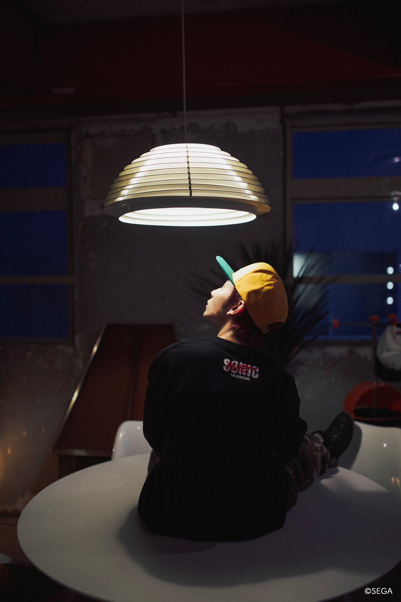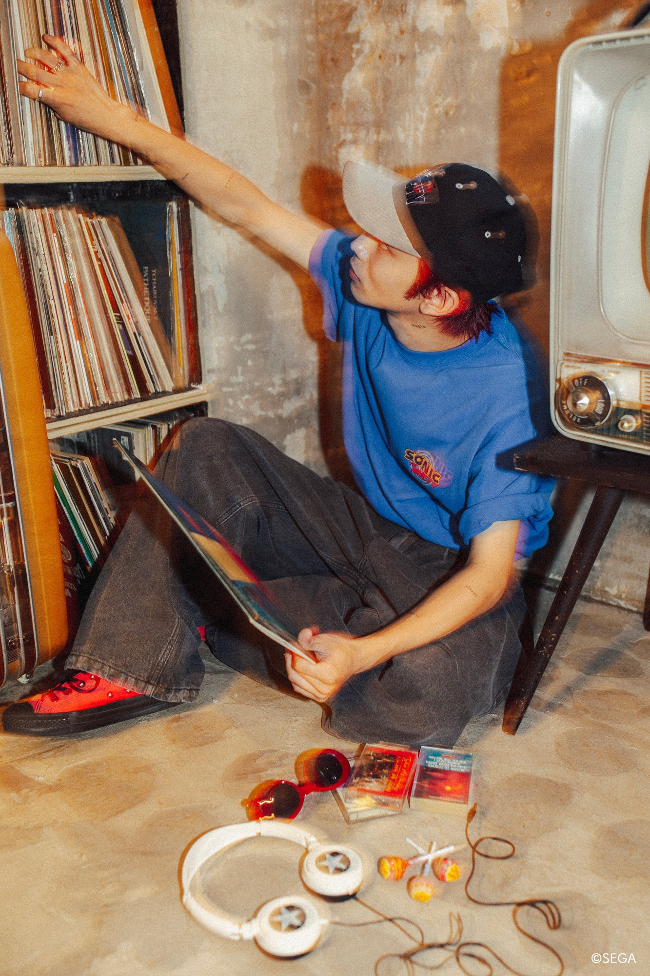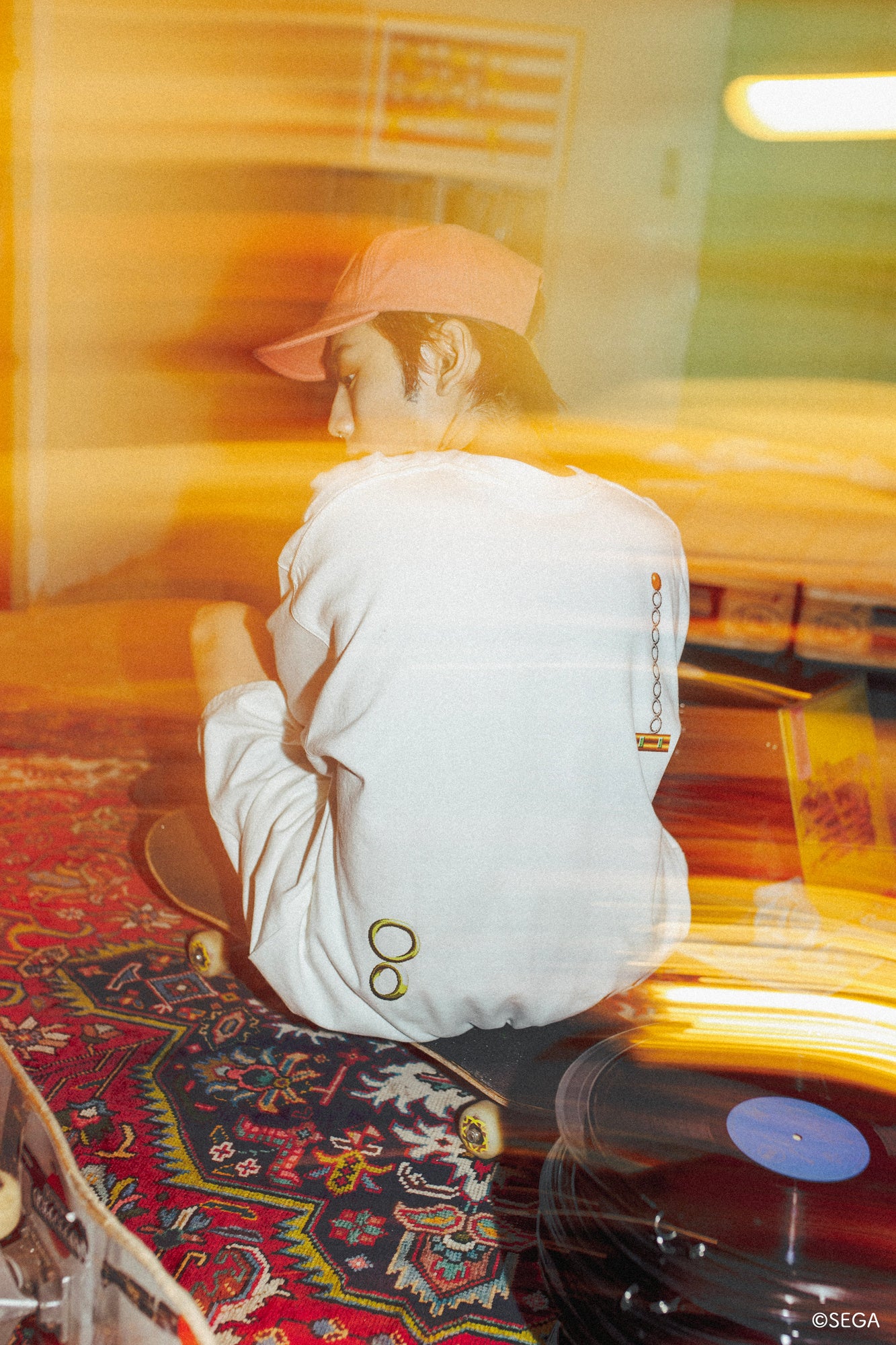 フロントにコラボ仕様の「SONIC THE NINETY」ロゴ、バックにはヘッドホンを装着したソニック・ザ・ヘッジホッグが特徴的なアイテム。