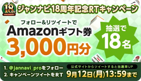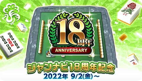 「ジャンナビ麻雀オンライン」は2022年9月2日(金)に18周年迎え、記念として豪華アイテム盛りだくさんの様々なキャンペーンを開催します!