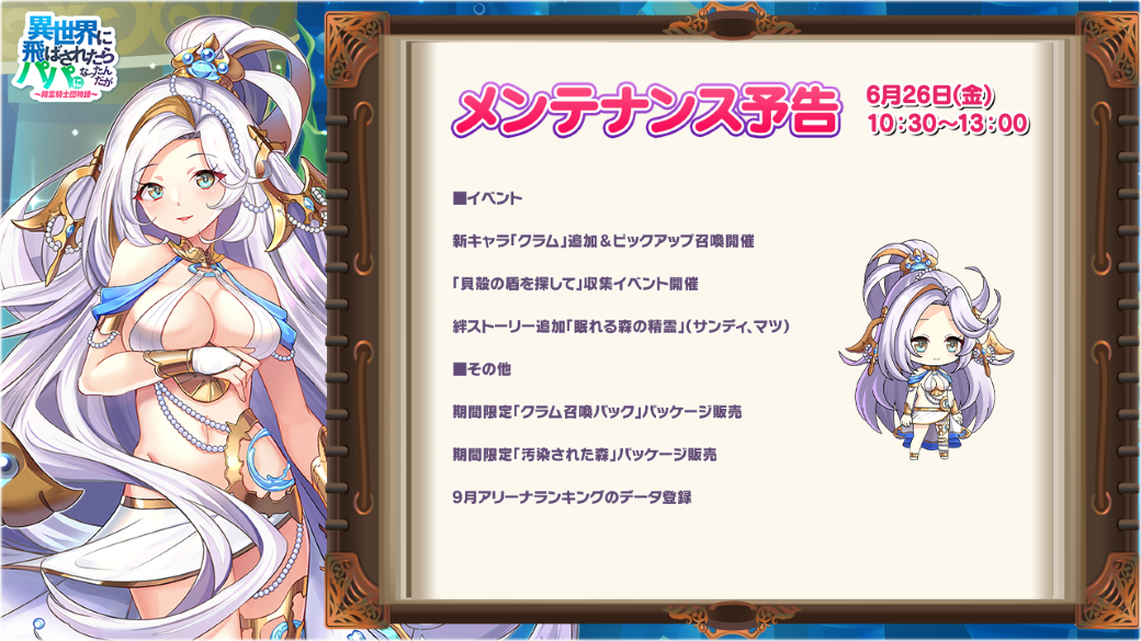 また、8月26日のメンテナンス後からはクラムの貝殻の盾収集イベント開催がスタートします。