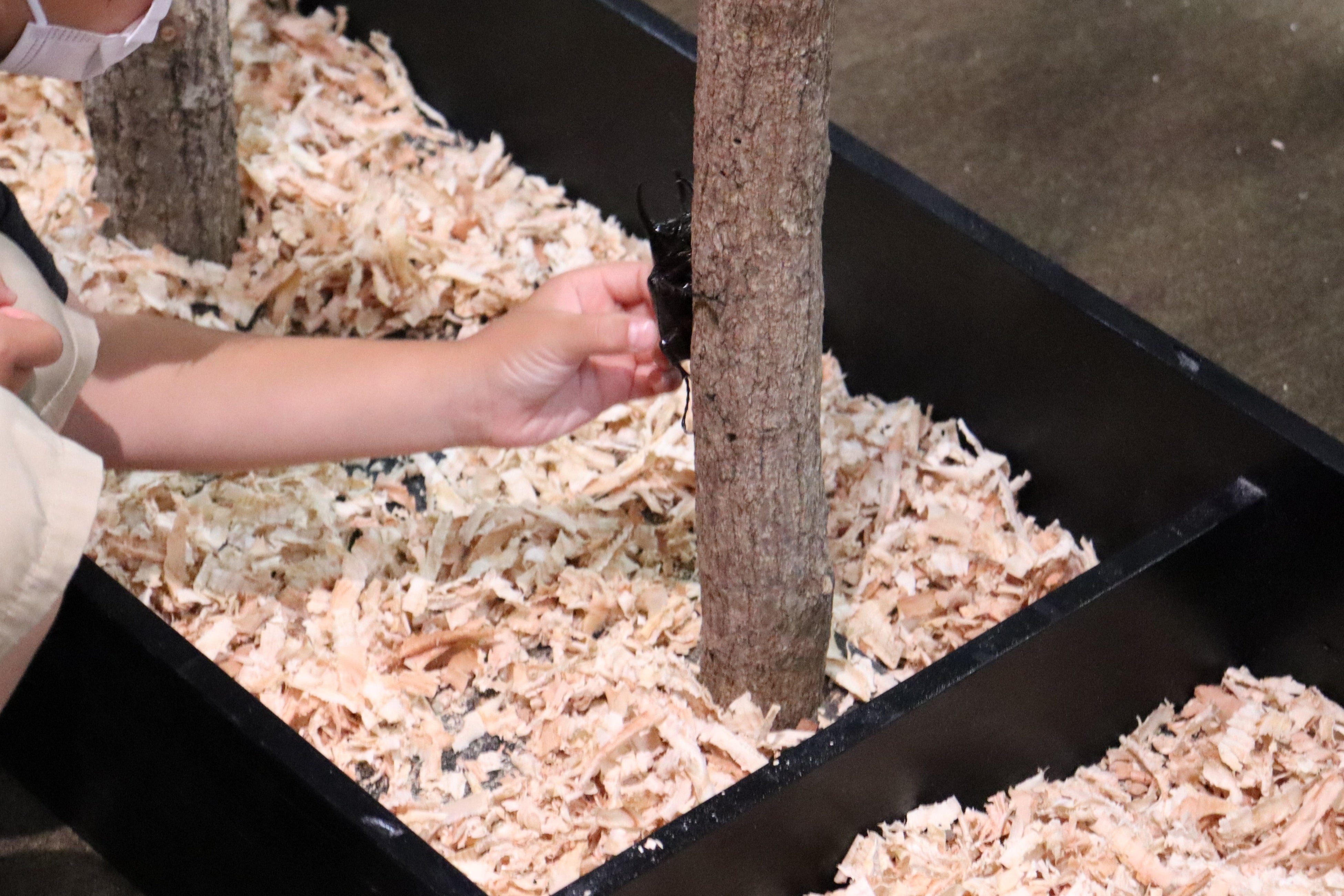 〇ふれあうことができる:・コーカサスオオカブト ・外国産オオヒラタクワガタ ・カブトムシ ・ノコギリクワガタ