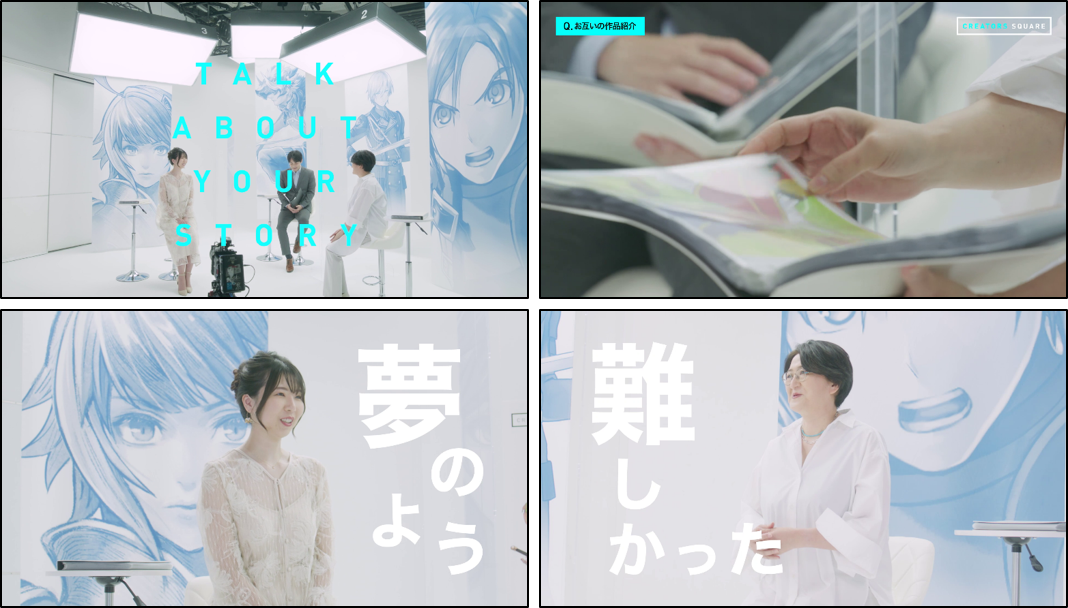 『CREATORS SQUARE』 は、スクウェア・エニックスのクリエイターが、いま話をしたい外部クリエイターをお招きして、お互いの作品やクリエイティブに対する考え方等について語り合う、対談形式の動画番組です。