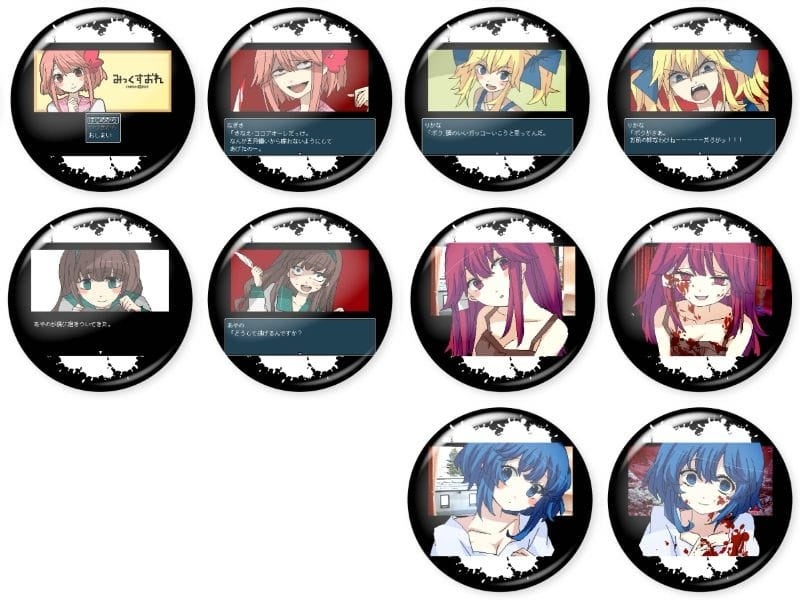 ■丸形バッジ≪クローズド≫「ほろびのゆりかご」「みことにっき」 全10種 各¥400(税込)