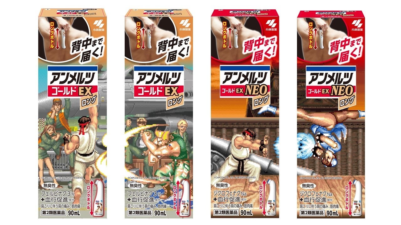 小林製薬株式会社(本社:大阪市、社長:小林 章浩)の肩こりの痛みや筋肉痛に効く液体消炎鎮痛薬『アンメルツ』と、発売35周年を迎える「ストリートファイター」がコラボレーションした製品を8月24日(水)から数量限定で発売いたします。