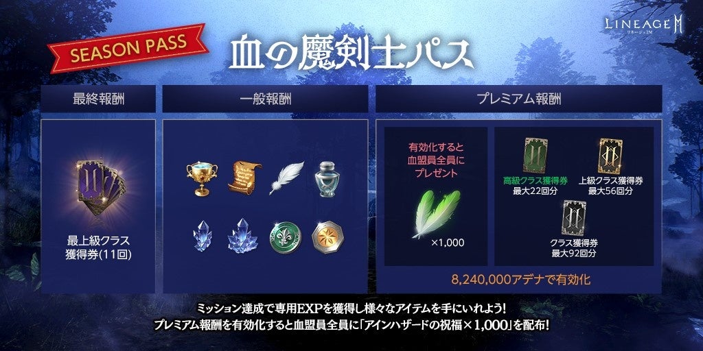 また、8,240,000アデナを使用することでプレミアム報酬を有効化することができます。
