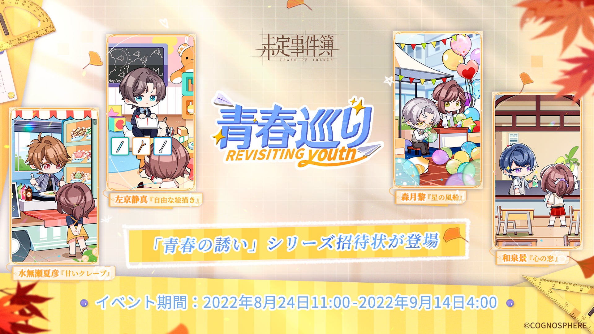 株式会社COGNOSPHERE (本社:東京都渋谷区、代表取締役社長:李 承天)は、HoYoverseより配信中の女性向け恋愛ミステリーゲーム『未定事件簿』において、本日8月24日(水)より、期間限定イベント『青春巡り』第二弾を開催いたしました。