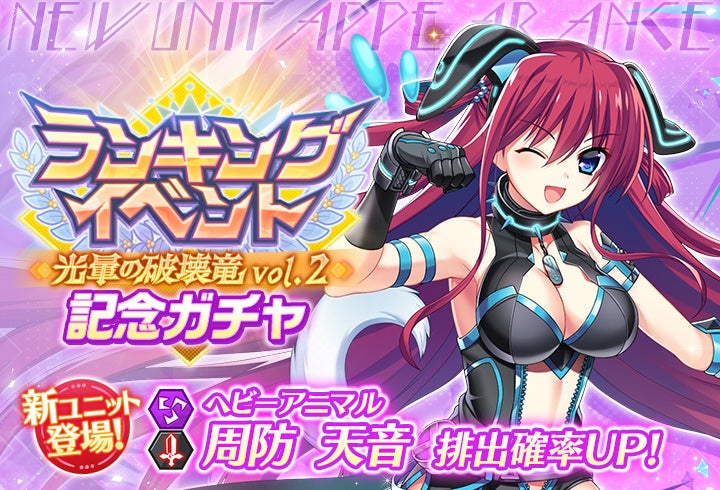 新ユニットとして「ヘビーアニマル 周防 天音」がピックアップガチャに登場!「光暈の破壊竜 vol.2」で大活躍間違いなしのアタッカーです!期間限定で排出確率アップ中のこの機会に獲得し、イベントに挑んでみてください。